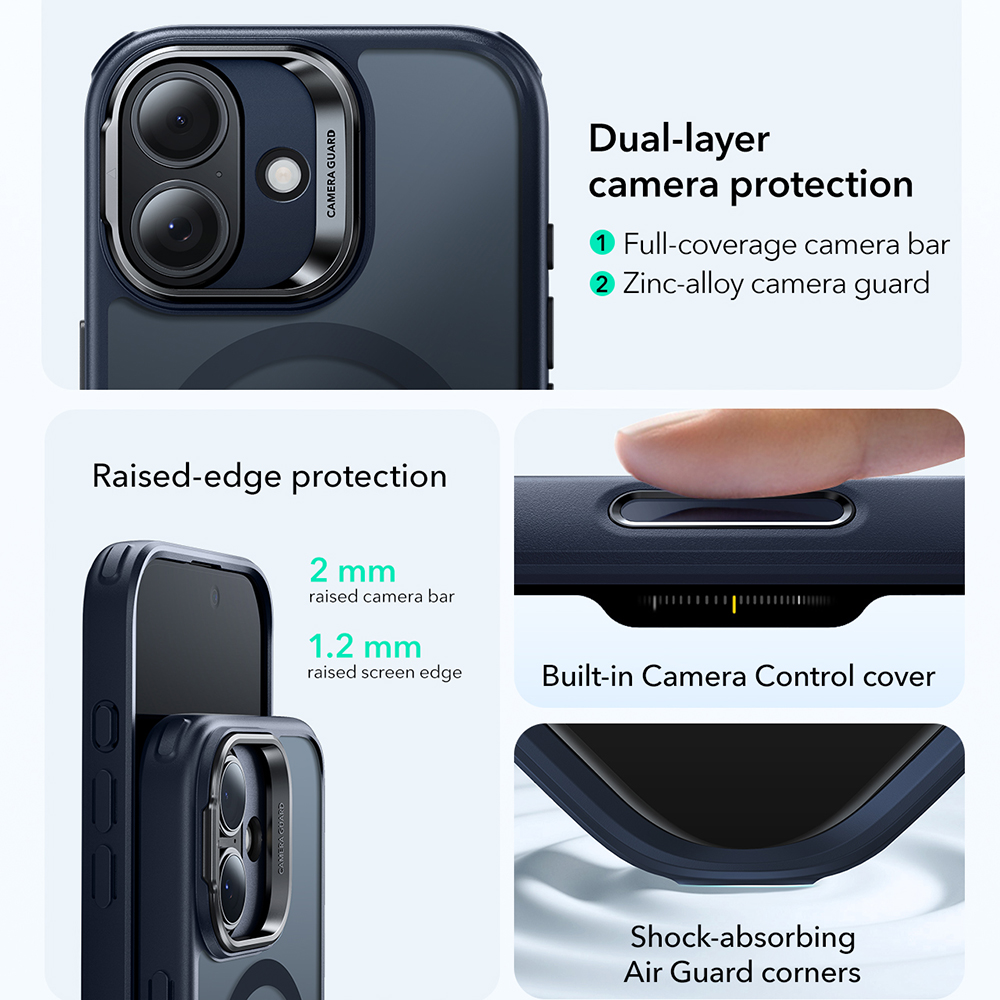 - Ütéselnyelő légpárnás sarkok: Az Air Guard technológiával készült sarkok elnyelik az ütéseket, extra védelmet nyújtva a telefon sarkaiban.