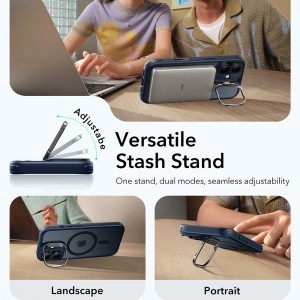 A beépített "Versatile Stash Stand" kitámasztó forradalmasítja a telefonhasználatot. Élvezze a kéz nélküli élményt, bármilyen tevékenységet is végez: