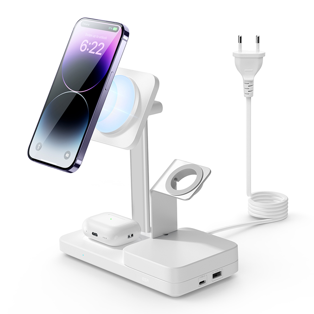 Esr – prémium 5 az 1-ben vezeték nélküli töltőállomás halolock (6e004) – GaN-nel, iphone magsafe, airpods, apple watch, 65w – fehér