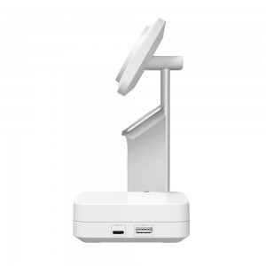 - 5 az 1-ben töltési megoldás: Egyidejűleg töltheted iPhone-odat (MagSafe kompatibilis), AirPods fülhallgatódat, Apple Watch órádat, és még két további eszközt a beépített USB-A és USB-C portokon keresztül.