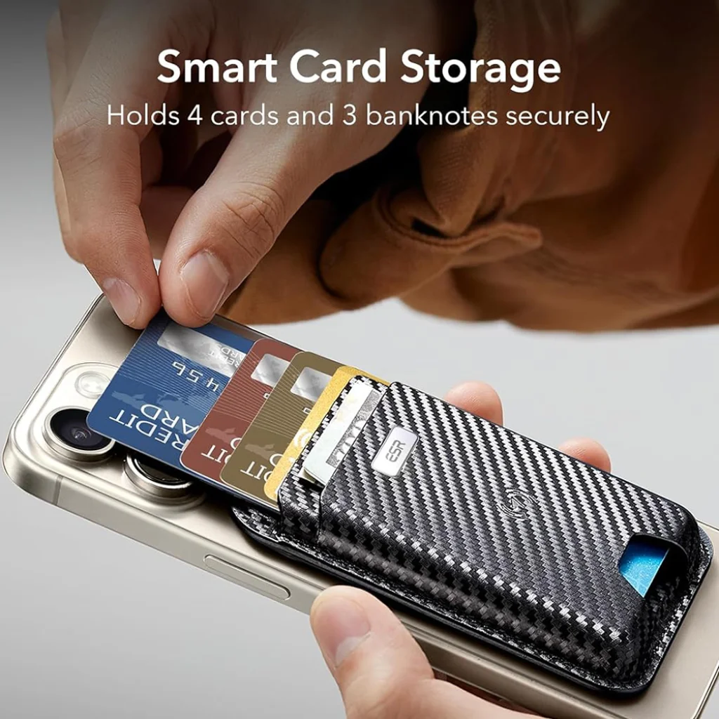 Termék leírás ESR - Prémium Pénztárca Klasszikus Geo MagSafe (2K64403) - Intelligens 4 Kártyás Tároló, Műbőrből Készült - Fekete Karbonszál