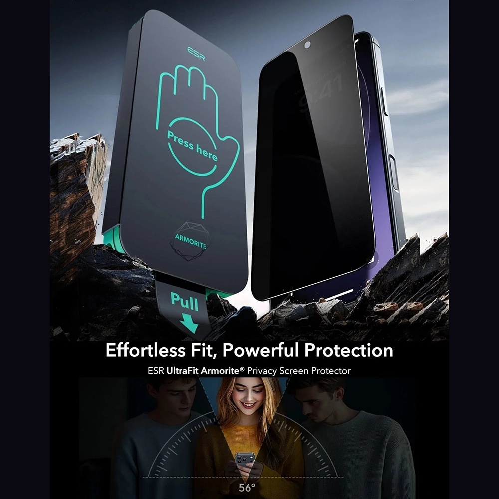 Óvja meg személyes adatait a kíváncsi tekintetektől! Az ESR Privacy Armorite képernyővédő innovatív, 28 fokos betekintési szöge biztosítja, hogy a kijelző tartalma csak Ön számára látható maradjon. Jobbról és balról is 28 fokos szögtől kezdve a képernyő sötétedik, így a körülötte állók számára a tartalom olvashatatlanná válik. Élvezze a szabadságot, hogy bárhol, bármikor nyugodtan használhatja telefonját, anélkül, hogy aggódnia kellene a nem kívánt pillantások miatt.