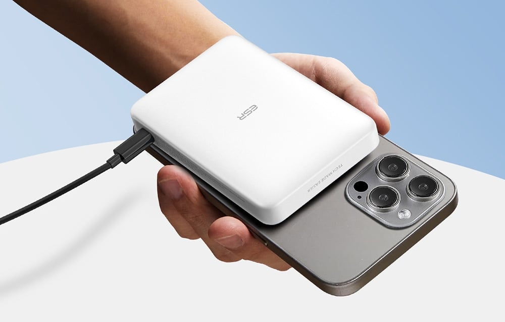 ESR Qi2 MagSlim 10000 mAh mágneses powerbank (fehér).
