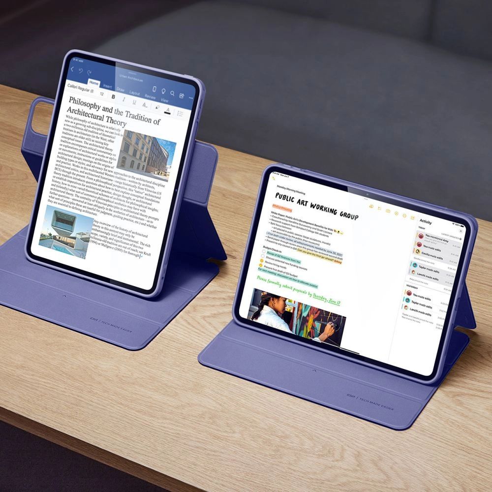 Fedezd fel az ESR Rebound Hybrid tok tökéletes kombinációját stílus, funkcionalitás és védelem szempontjából. Ez egy könnyű és vékony tok, amely nemcsak szilárd védelmet nyújt az iPad-ednek, hanem új funkciókat is hozzáad, köszönhetően a mágneses hátlapnak és az innovatív fedélnek, amely praktikusan állvánnyá alakítható. A kompromisszummentes biztonság érdekében a tok 360 fokos védelmet garantál. Az átlátszó és tartós hátlap és a rugalmas keret elnyelik az ütéseket, valamint a fejlettebb sarok- és kameravédelem (Camera Guard Pro) szilárd védelmet nyújt eszközödnek. Ezen felül, a tok lehetővé teszi, hogy biztonságosan tárold az Apple Pencil 2-t a dedikált oldalsó mágneses töltőrekesznek köszönhetően. Emellett páratlan sokoldalúságot és kényelmet kínál. Az innovatív mágneses hátlap lehetővé teszi az állvánnyá való átalakítást, vagy akár teljes eltávolítást, ami még jobb kényelmet biztosít írás, játék vagy filmnézés közben. A Rebound Hybrid, az automatikus alvás és ébresztés funkció révén azonnal reagál a nyitásra vagy zárásra, ami az eszköz akkumulátorának megtakarítását eredményezi. Akár dolgozol, kedvenc tartalmadat nézed, vagy csak egy pillanatnyi pihenést élvezel, a tok alkalmazkodik az igényeidhez, nemcsak védelmet nyújtva, hanem korlátlan lehetőségeket az iPad használatához. Hogyan ellenőrizheted, hogy a kiegészítő illik-e az iPad-edhez?