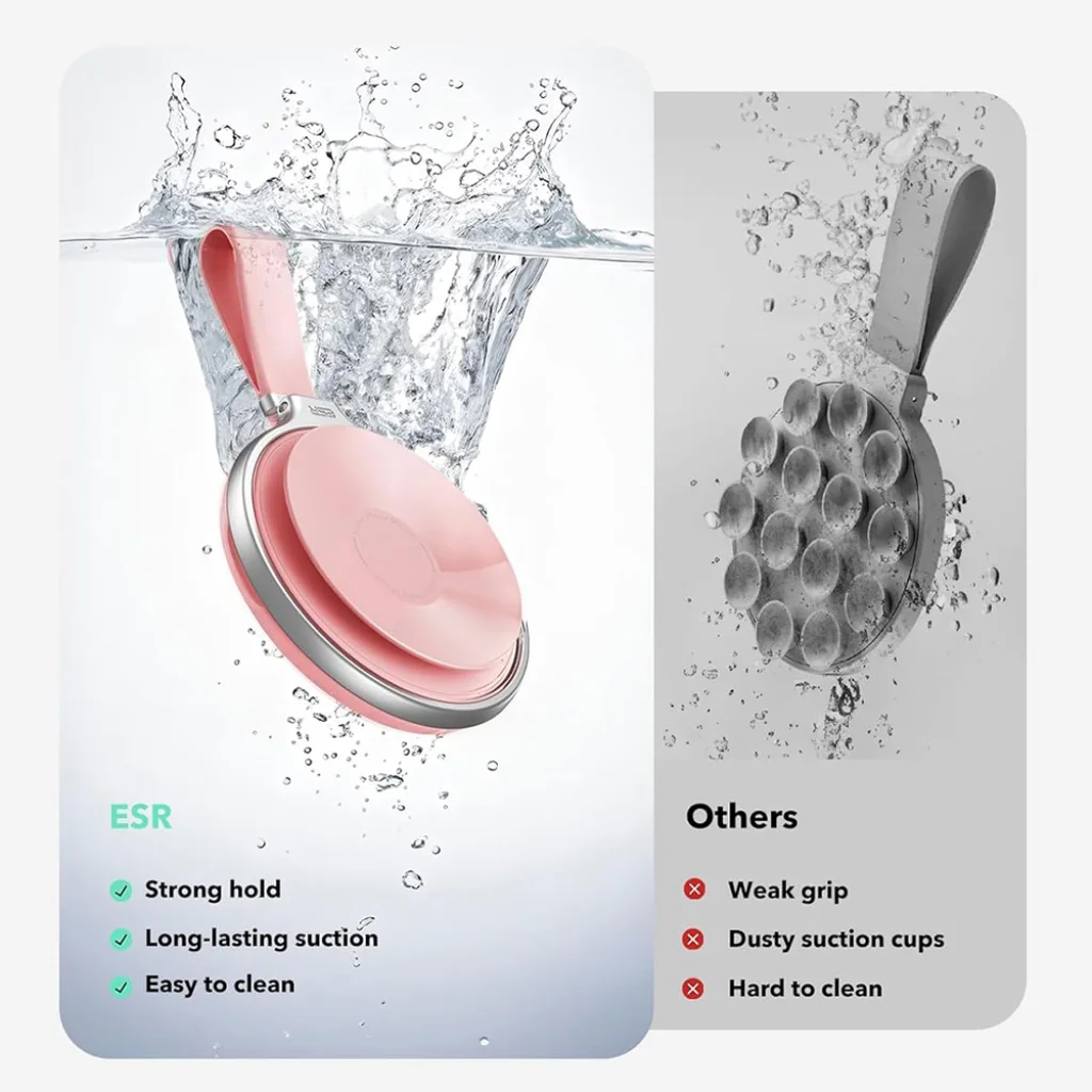 - Rendkívüli tapadási erő: Az ESR egyedi technológiájának köszönhetően a tapadókorong akár 10-szer hosszabb ideig tartja a telefont, mint a hagyományos megoldások. A rendkívül erős és megbízható tartásnak köszönhetően nem kell aggódnia az eszköz leesése miatt.