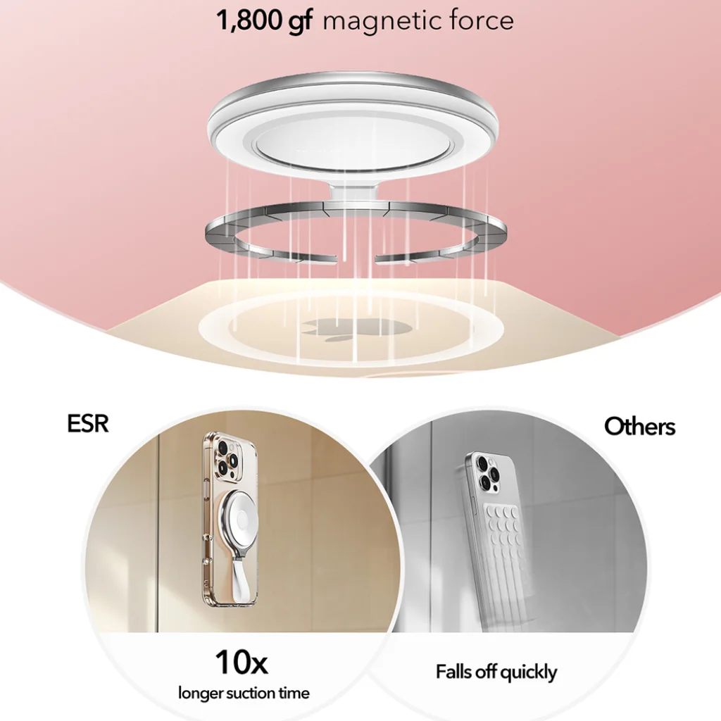Az ESR – Tapadótelefon-tartó HaloLock (2K6500201) elegáns fehér színben kapható, de elérhető fekete és rózsaszín árnyalatban is, hogy tökéletesen passzoljon stílusához.