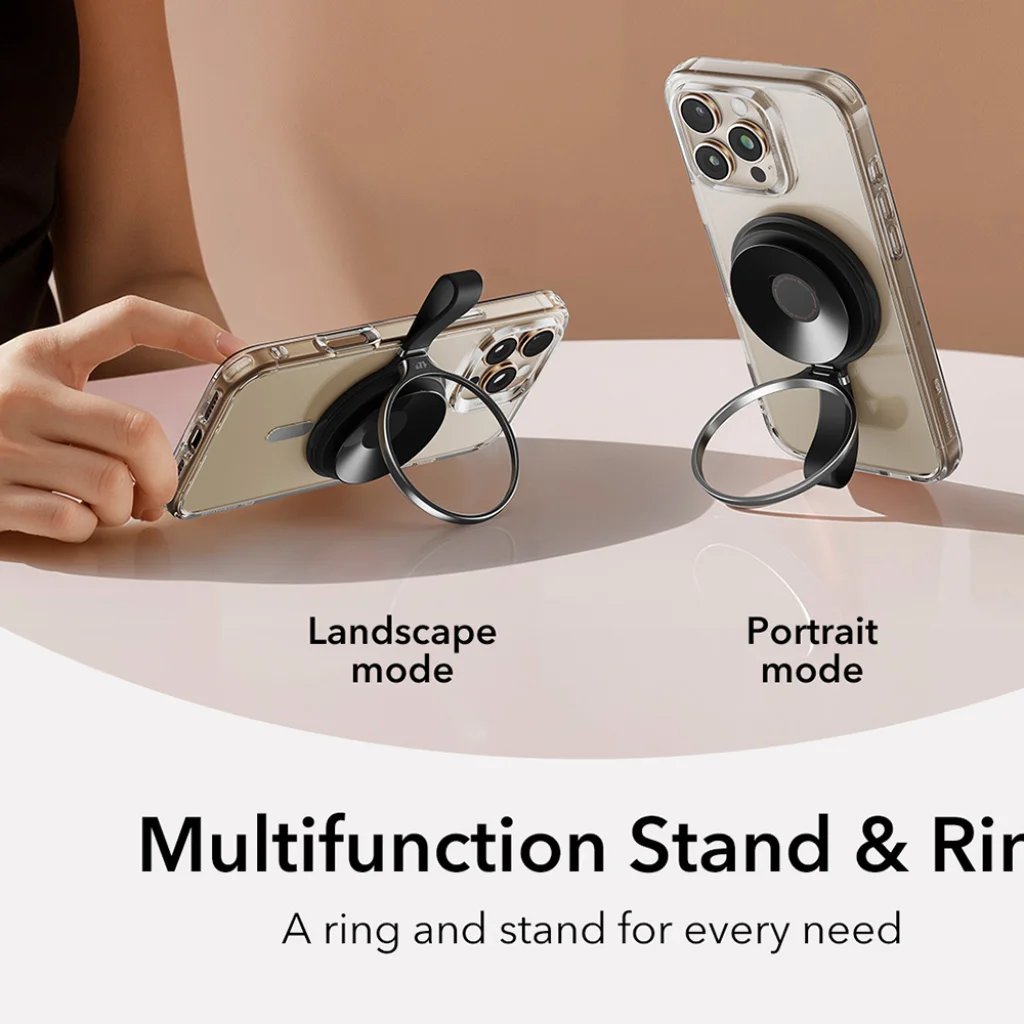 - Multifunkcionális gyűrű és állvány: A 360 fokban szabadon elforgatható, puha szilikon borítású gyűrű nem csupán kényelmes és biztonságos fogást nyújt, de rendkívül praktikus állványként is funkcionál. Használja telefonját fekvő (landscape) vagy álló (portrait) módban, élvezze a videók, receptek vagy videóhívások kéz nélküli nézésének szabadságát.