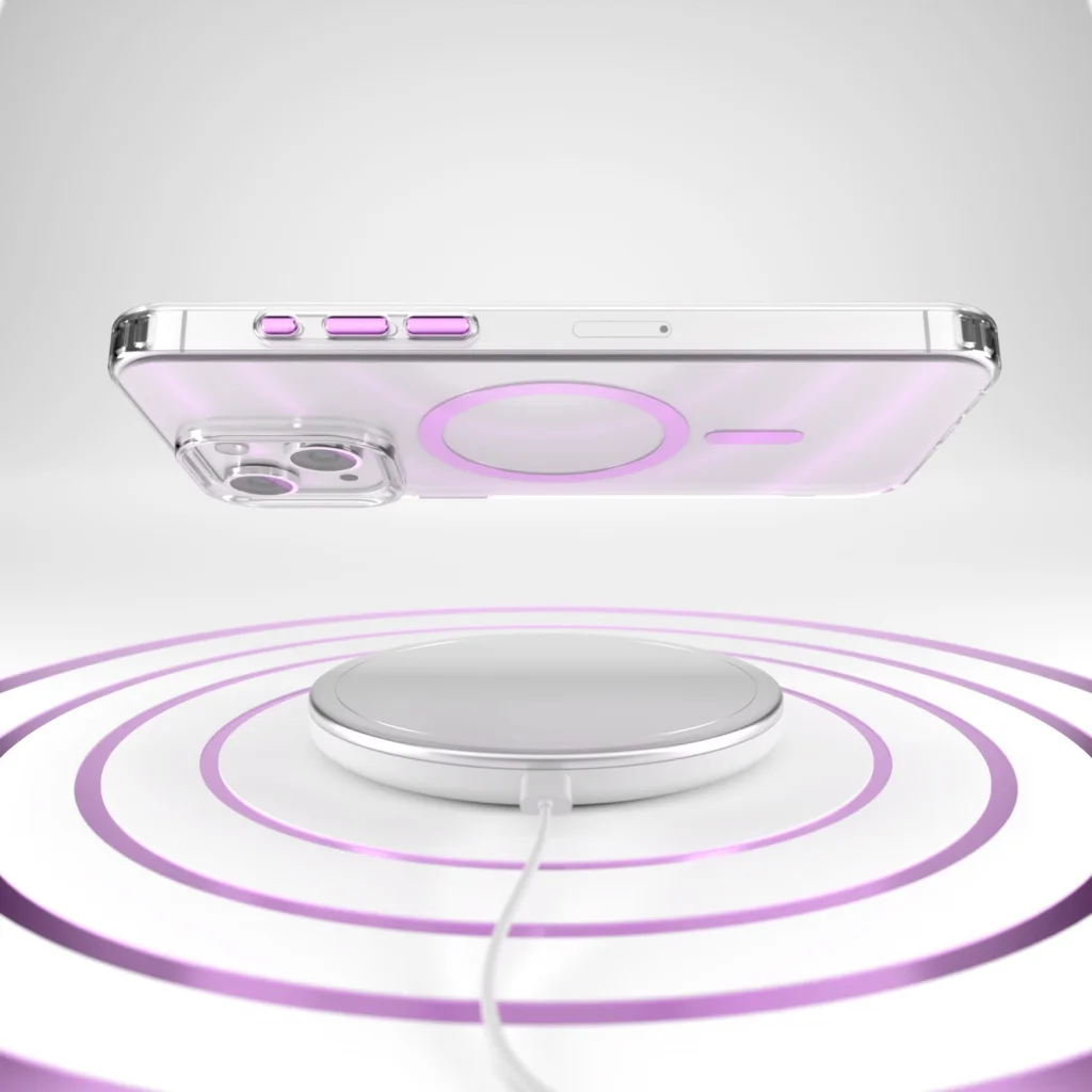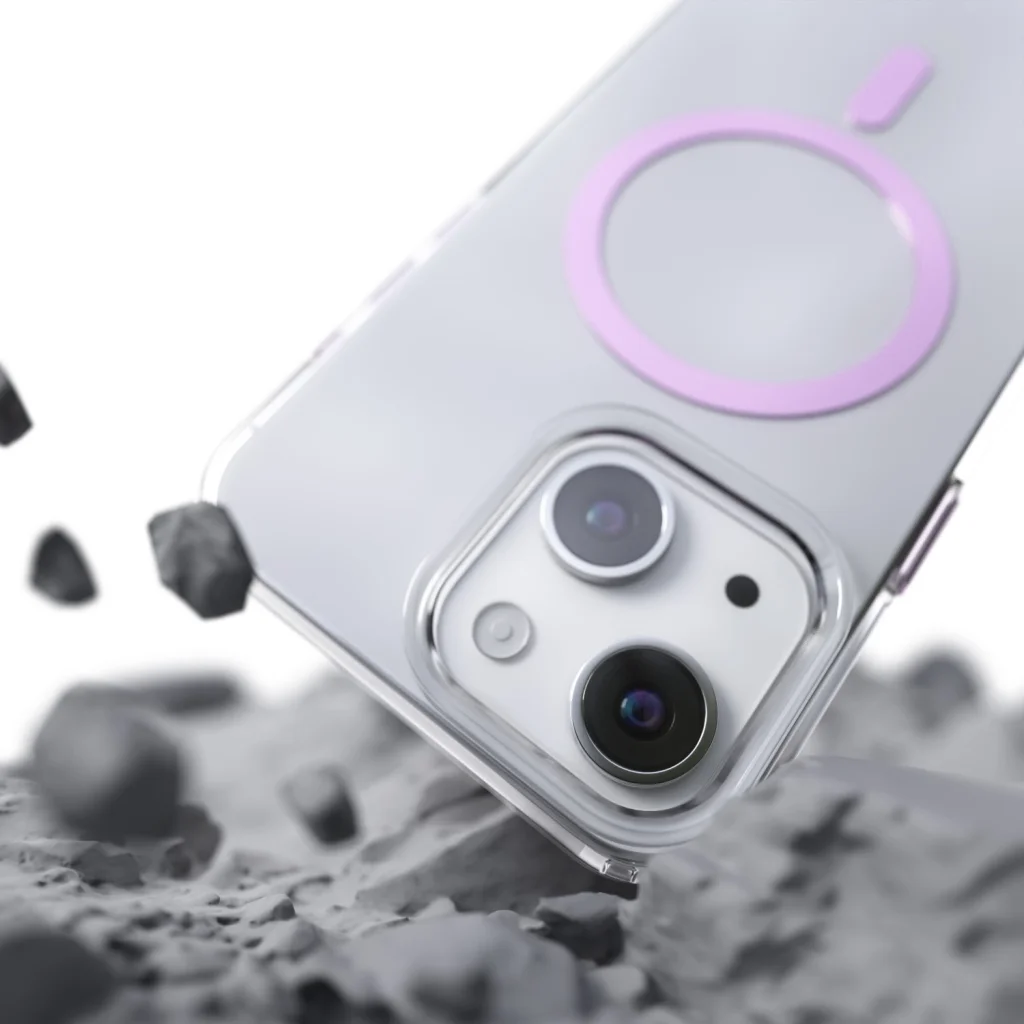 Az Etteri Color Mag tok két anyagból készült: rugalmas, formázott TPU szélek és egy rigid PC hátlap. Ez a kombináció tökéletes illeszkedést biztosít az eszközhöz, biztonságos fogást nyújtva. Az átlátszó hátlap nem takarja el a telefon dizájnját, kiemelve annak eredeti esztétikáját. Fém gombok és egy színben illeszkedő akcentus egyedi karaktert adnak.