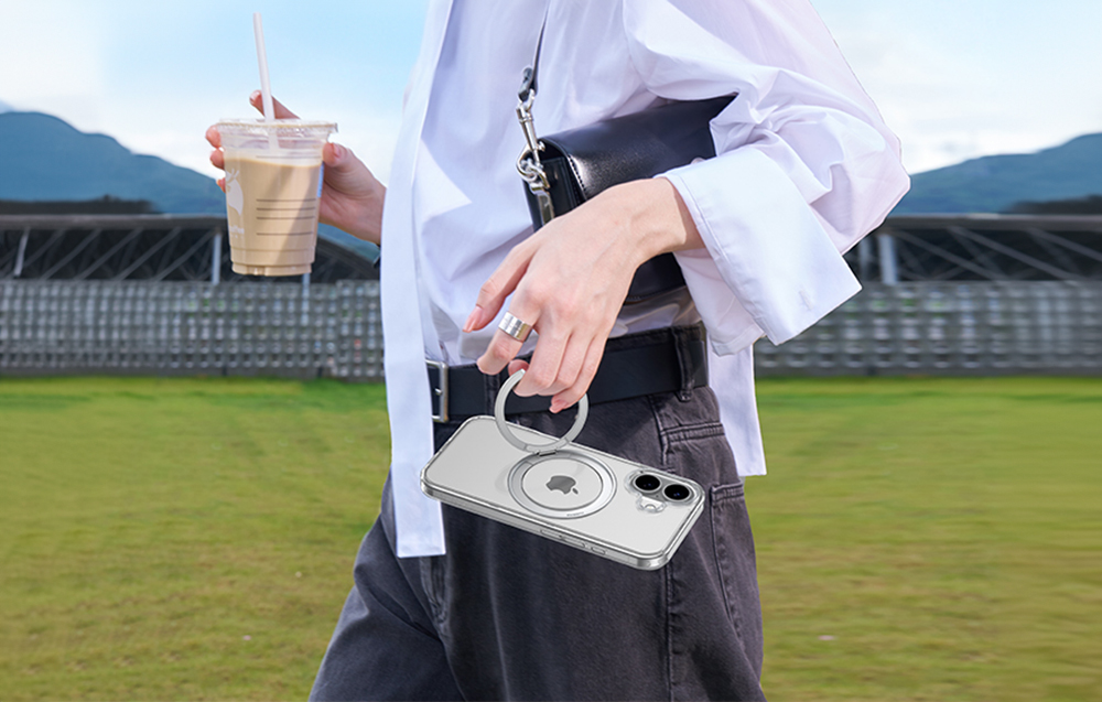 A TORRAS Ostand Pro tokba beépített gyűrű kettős szerepet tölt be. Kényelmes fogásként szolgál, amely biztonságosan tartja a telefont bármilyen szituációban, minimalizálva a véletlen leejtés kockázatát. Emellett a gyűrű funkcionális állványként is szolgál, amely lehetővé teszi, hogy a telefont a tökéletes szögbe állítsa videók nézéséhez, videohívásokhoz vagy fényképezéshez. A 360°-os forgás és a precíz mechanizmus minden szögbeállítást simává és stabilná tesz.