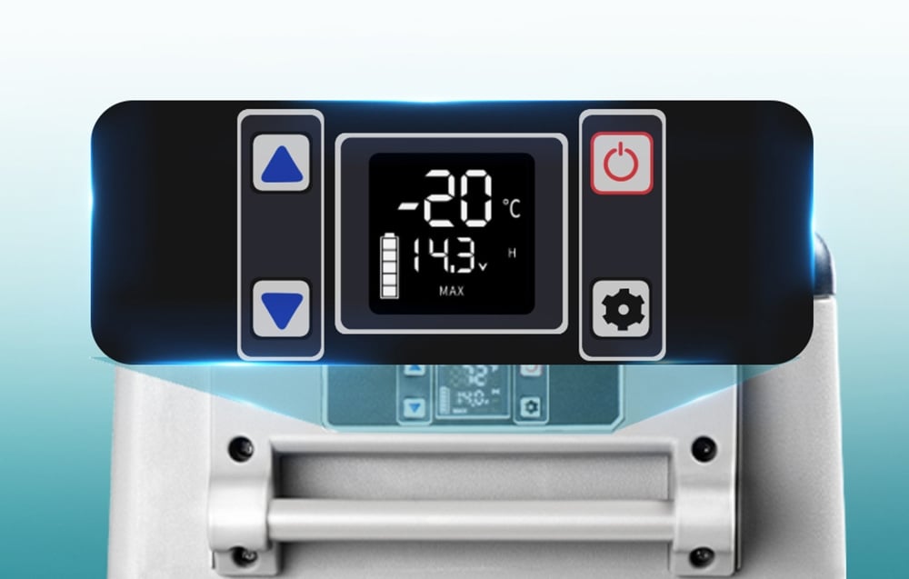 Az intuitív kezelőpanel lehetővé teszi a hőmérséklet beállítását, valamint az ECO és MAX üzemmódok közötti váltást. Az alkalmazás segítségével távolról is kezelhető, módosíthatóak a beállítások és ellenőrizhetők a paraméterek. Az ütésálló dizájn, a 3 rétegű hőszigetelés és az autóakkumulátor lemerülés elleni védelem biztosítja a hosszú távú használhatóságot és a hűtőszekrény védelmét.