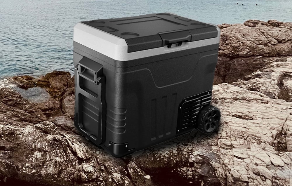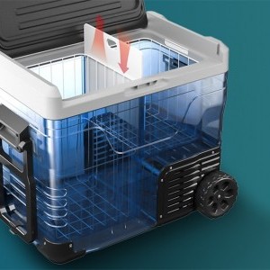 Az Euhomy CF003 a CFB sorozatból egy 12V-os autós hűtőszekrény, amely egyesíti a robusztus hűtést a szállítás kényelmével. Körülbelül 50 literes kapacitása kiválóan alkalmas családi kirándulásokhoz, hétvégi kiruccanásokhoz vagy hosszabb autóutakhoz. A beépített kerekek és a teleszkópos fogantyú egy mobil minihűtőszettet tesznek belőle, amelyet bőröndként húzhat. A vezérlés intuitív az érintőképernyőnek és a mobilalkalmazásnak köszönhetően, a praktikus belső kialakításnak köszönhetően pedig minden ételt vagy kedvenc italát rendszerezheti.