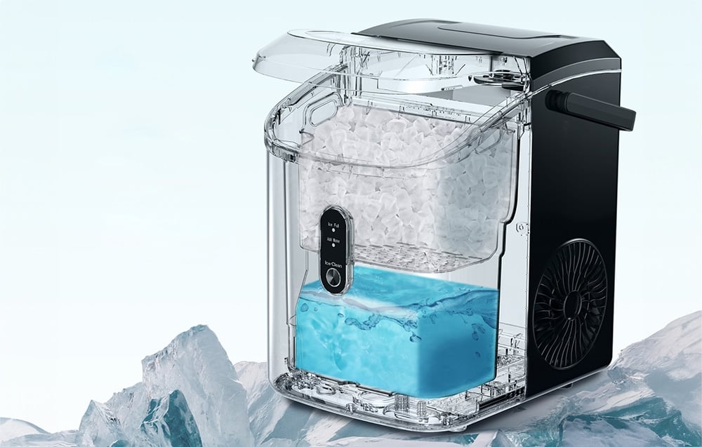 A mindössze 24 × 29,5 × 32,99 cm-es méreteivel az Euhomy IM002 szinte bárhol elfér - a konyhapulton, a nyaralóban vagy a lakóautóban. Működéséhez csak áramhoz és vízhez való hozzáférésre van szükség - megtöltöd ivóvízzel, megnyomsz egy gombot, és máris friss jeget élvezhetsz, amikor csak kedved tartja. A készlet tartalmaz egy kosarat is a jég számára, valamint egy praktikus spatulát a kényelmes felhelyezéshez.