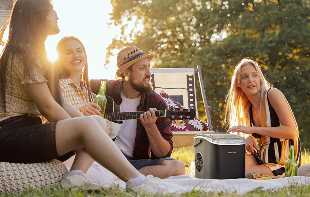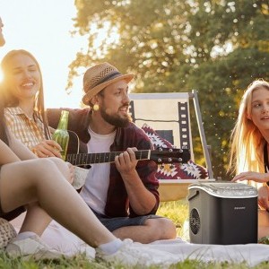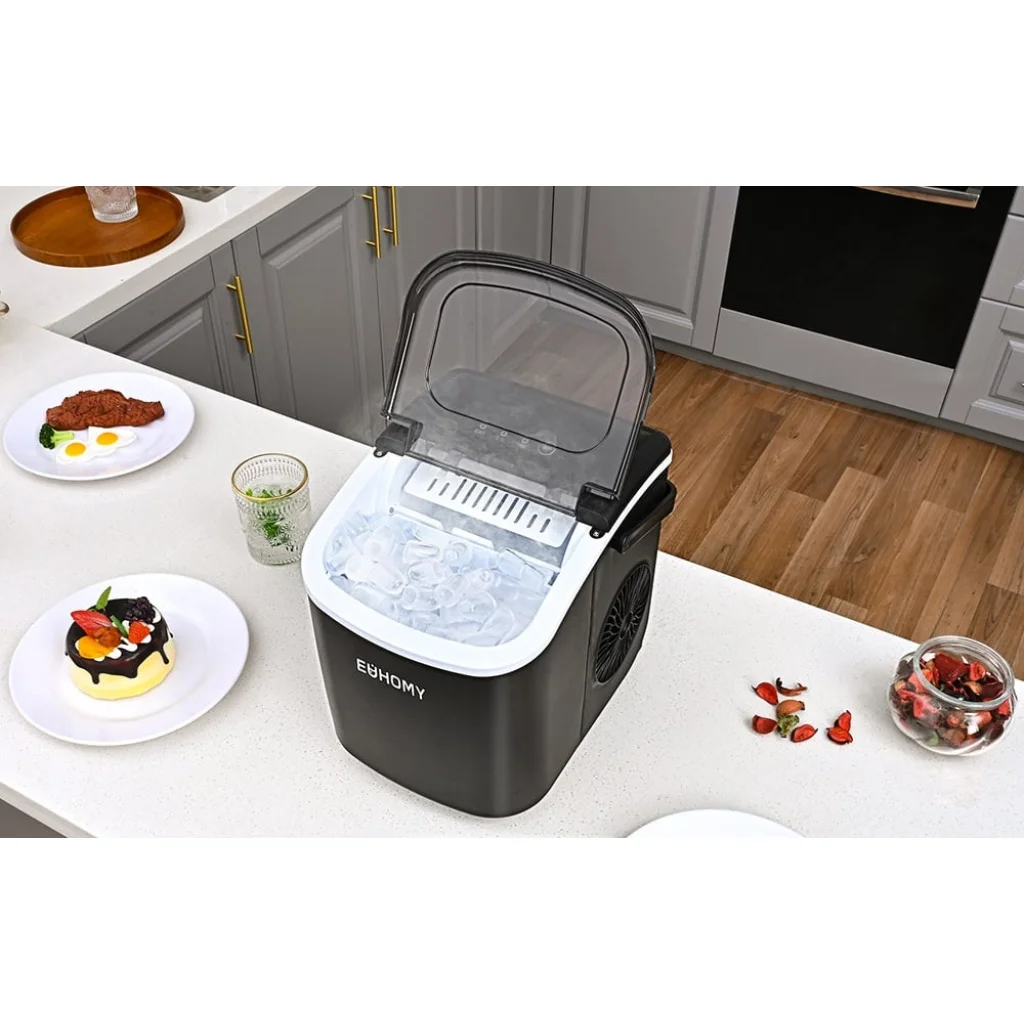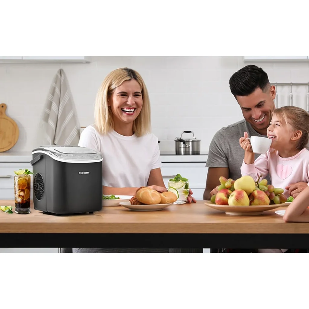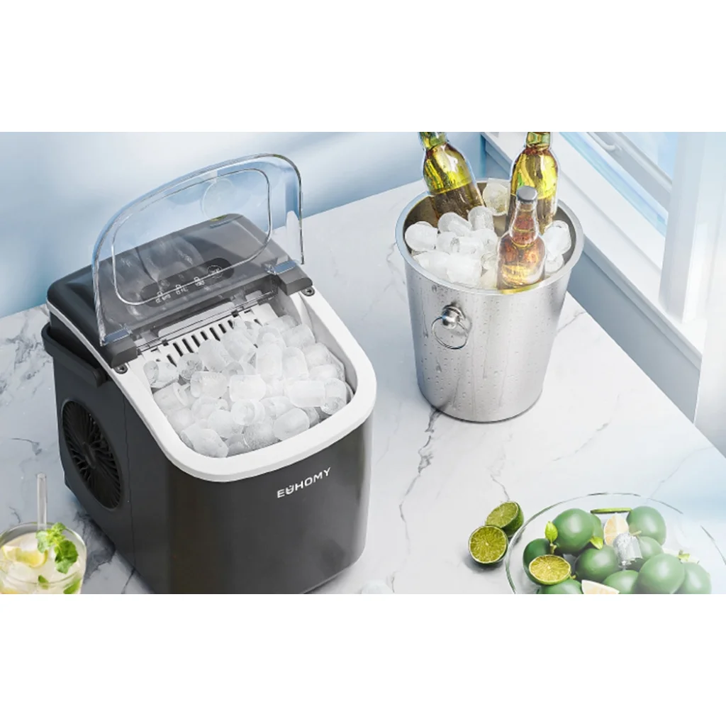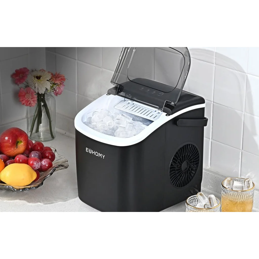 Teljes mobilitás: Az Euhomy IM06D jégkockakészítő nem igényel állandó vízcsatlakozást vagy bármilyen szerelést. Elég vizet önteni és megnyomni egy gombot. Kompakt méretei (nagyjából egy A4-es lap méretű) és praktikus fogantyúja miatt könnyen hordozható.