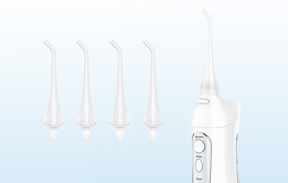 A FairyWill FW-5020E szájzuhanyhoz készült fejek. A szett 4 db cserélhető fejet tartalmaz, így az egész család használhatja fogtisztításra. Minden fej viszonylag hosszú és 360°-ban elforgatható, lehetővé téve a száj nehezen hozzáférhető területeinek elérését is. Megjegyzés: a baktériumok szaporodásának elkerülése és a higiénia fenntartása érdekében javasoljuk, hogy körülbelül 3 hónaponta cserélje a fúvókát.
