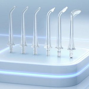 A készletben 6 fúvóka található a szájzuhanyodhoz. Így az egész család használhatja a fogak tisztítására. A csomag tartalmaz 3 normál fúvókát, egy parodentális fúvókát, egy nyelv fúvókát és egy fogszabályozó fúvókát. Minden fúvóka viszonylag hosszú, lehetővé téve a nehezen elérhető szájterületek tisztítását. Megjegyzés: A baktériumok elszaporodásának megelőzése és a higiénia fenntartása érdekében javasoljuk, hogy körülbelül 3 havonta cserélje a fúvókát.