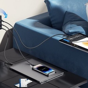 Az Essager ECT2CA-ZXB01-Z lehetővé teszi három eszköz egyidejű csatlakoztatását, növelve ezzel a funkcionalitását és kényelmét. A két USB-C port mindegyike akár 100 wattot is képes leadni, ami elegendő a legigényesebb eszközök, például laptopok töltésére. Az USB-A port akár 18 wattot is kínál, ami ideális okostelefonok vagy más kisebb eszközök töltésére.