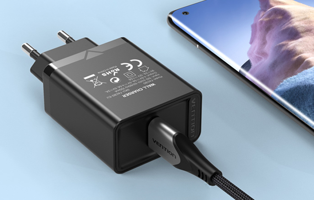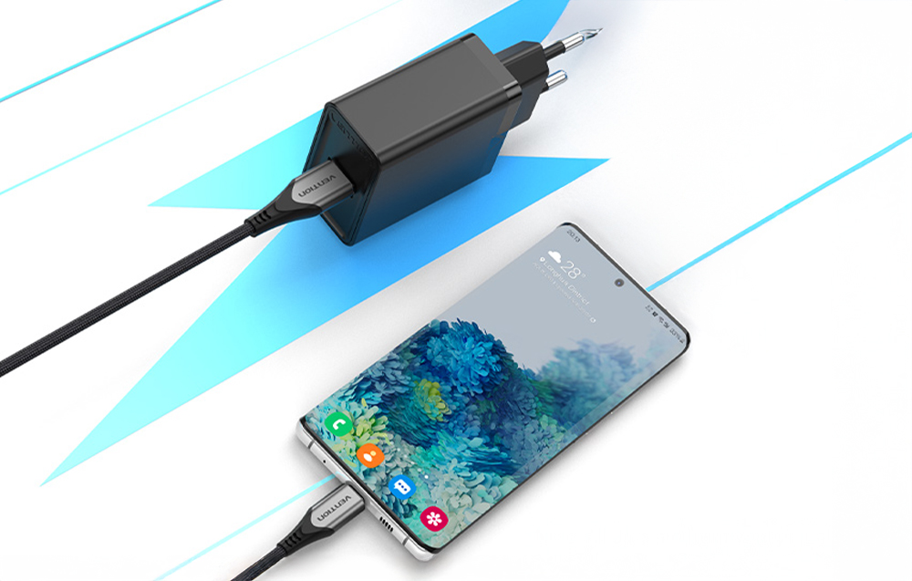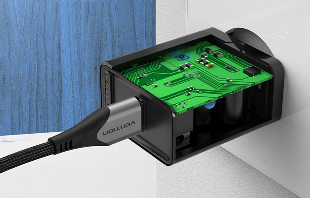 Magas hatékonyság és gyors töltés Nagy teljesítményű kondenzátorral, MOS vezérlőpanellel és transzformátorral van felszerelve, a Vention töltő hatékony áramátvitelt biztosít minimális veszteségekkel. Intelligens chipekkel a töltő automatikusan beállítja a töltési teljesítményt a csatlakoztatott eszköz specifikációihoz, támogatva a protokollokat, mint a Qualcomm QC 3.0, Samsung AFC, BC1.2 és Apple 5V/2.4A. Az eredmény gyors és optimális töltés - például csak 110 perc szükséges egy Xiaomi 8 Lite teljes feltöltéséhez.