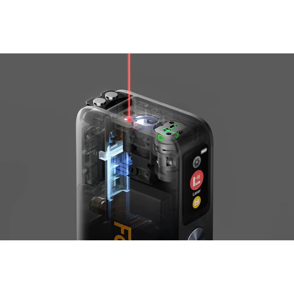 Tiszta IPS HD képernyő minden körülmények között. A Fanttik A10 Pro 3,73 cm-es színes IPS képernyővel rendelkezik, amelynek fényereje 500 nitig állítható, felbontása pedig 172×320. Ezáltal az eredmények még erős napfényben is könnyen leolvashatók. Fontos, hogy a kijelző egyszerre mutatja a mérőszalag és a lézer mérési eredményeit, így nem kell váltani a nézetek között, ami megkönnyíti a munkát a terepen és az építkezésen.