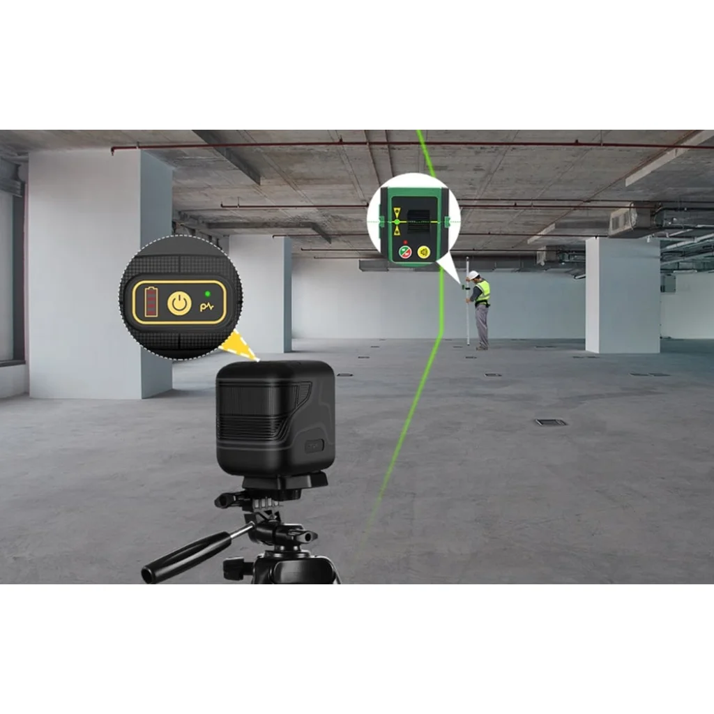 A készülék energiaellátásáról egy beépített 3,7 V-os, 2200 mAh kapacitású lítium-ion akkumulátor gondoskodik. Az IP54 védettségű ház por- és fröccsenésálló, így a lézerszintező nehezebb építési körülmények között is megbízhatóan használható.