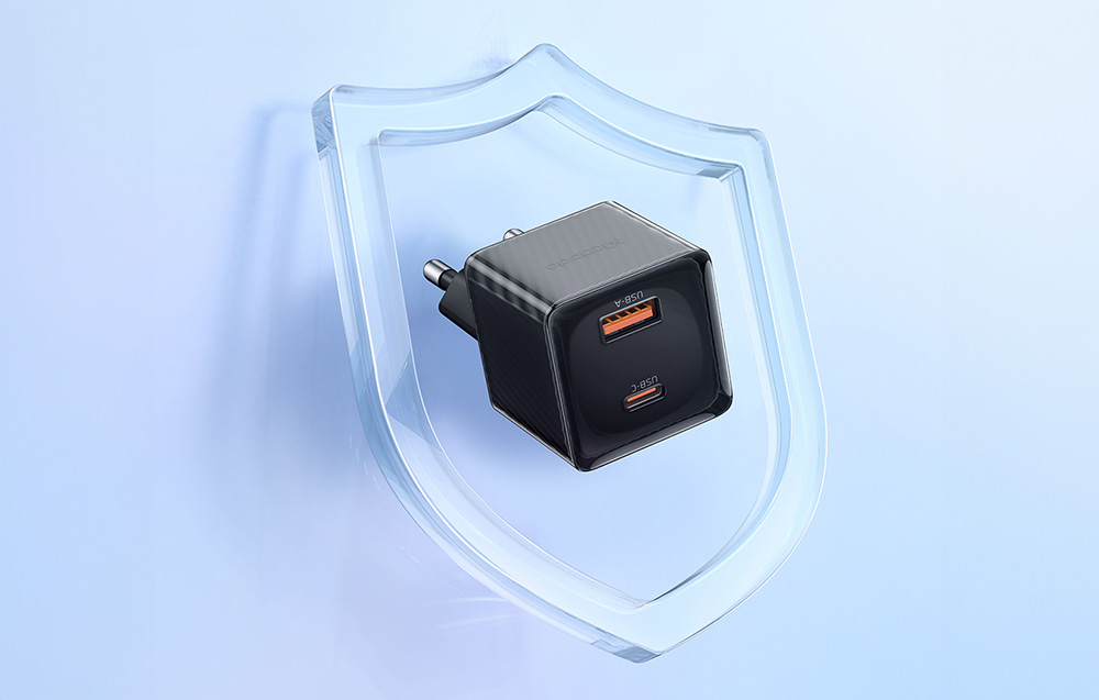 Töltse eszközeit anélkül, hogy aggódnia kellene azok károsodása miatt. A töltő 8 szintű védelemmel van ellátva, amely megbízhatóan véd rövidzárlat, túlzott teljesítmény, túláram vagy túlfeszültség ellen, többek között. Egy intelligens rendszer folyamatosan figyeli a hőmérsékletet töltés közben, hatékonyan megakadályozva a túlmelegedést. Ezen kívül a töltő automatikusan lassítja a töltési folyamatot, miután az akkumulátor elérte a 80%-os töltöttséget, ezzel segítve annak élettartamának meghosszabbítását.