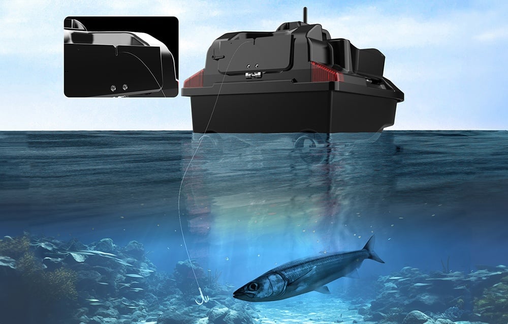 A csónak lehetővé teszi a zsinór és a horog hátsó részén történő akasztását is, így olyan helyekre is bedobhatja a horgot, ahová egy klasszikus horgászbottal nem jutna el. Ez a praktikus megoldás növeli a kényelmet és a horgászati lehetőségeket.