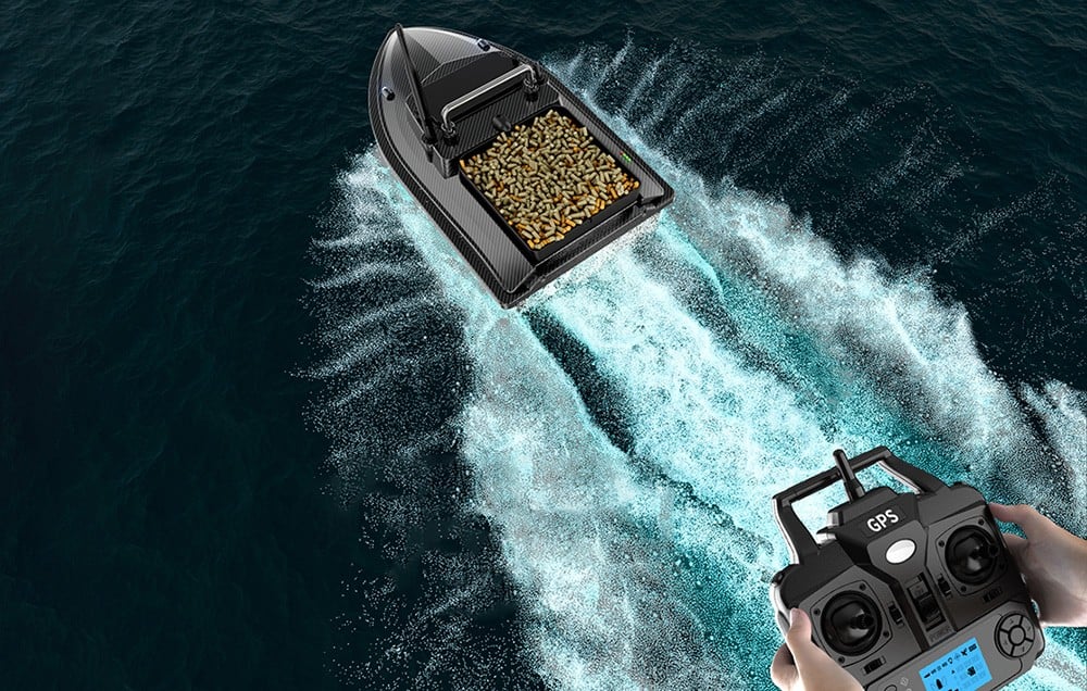 A vezérlés intuitív GPS-távirányítóval történik, háttérvilágítású LCD-képernyővel. Az Ön rendelkezésére áll többek között. állandó utazósebesség funkció, csalioldó gomb és fényszabályozás. A horgos rögzítésnek köszönhetően a csalikészletet pontosan, közvetlenül a kívánt helyre juttathatja.