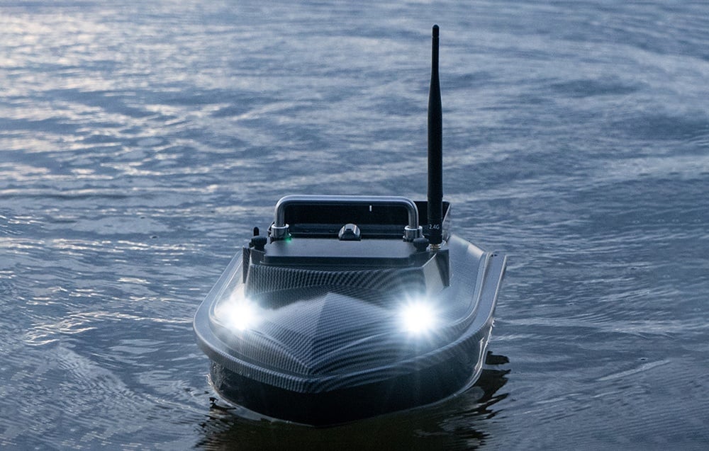 A fényes LED-lámpák az orron és a kék pozícionáló lámpák a hátulján még sötétedés után is megkönnyítik a látást és az irányítást. A csónak irányának és helyzetének teljes kontrolljával a nap bármely szakában és éjszaka is horgászhat.