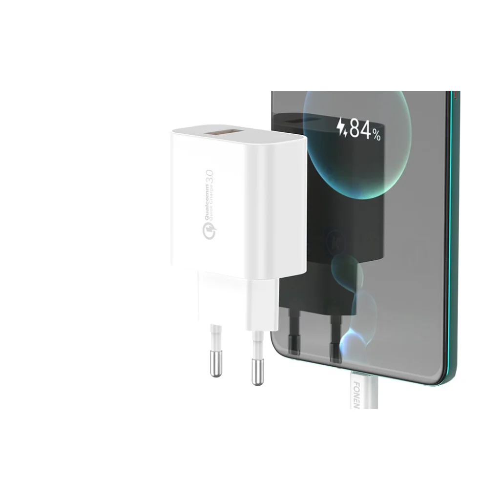 Gyorstöltő Foneng 1x USB QC3.0 EU46 + USB Lightning kábel