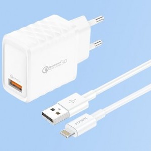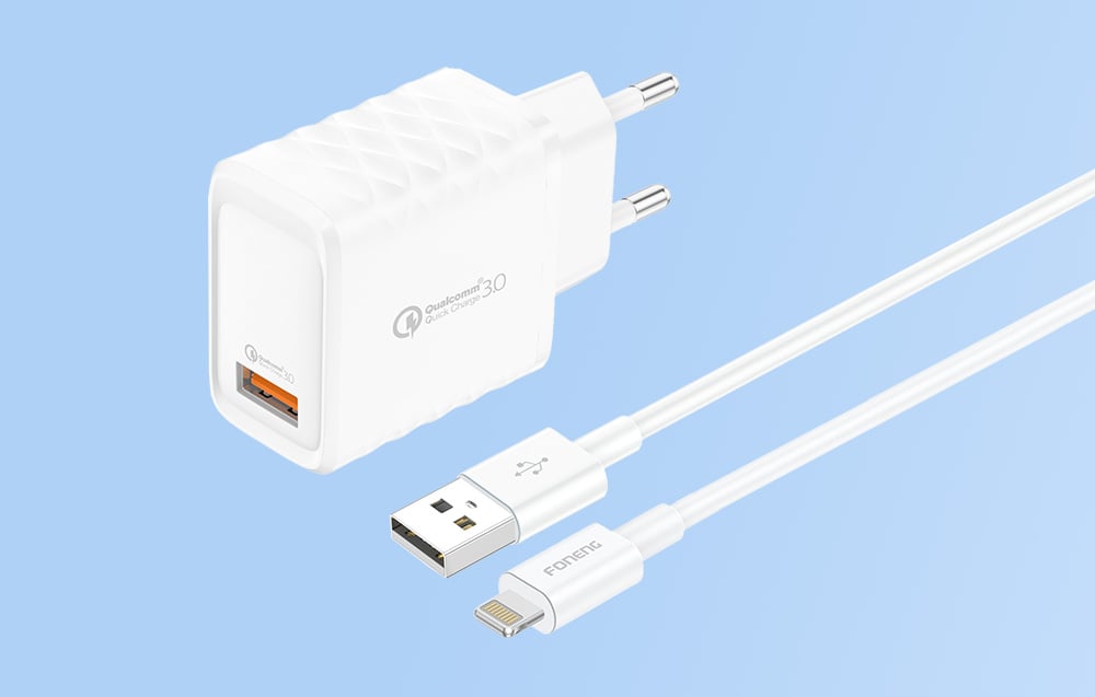 A Foneng EU54 USB-A, 3A teljesítményű töltő (Fehér) és az USB-A - Lightning kábel egy fejlett eszköz, amely gyors és hatékony töltést biztosít, akár 18W-ig, támogatva a legnépszerűbb gyorstöltési protokollokat, mint a QC2.0/3.0, PD2.0/3.0, AFC, FCP és PPS. A GaN (gallium-nitrid) technológiát alkalmazva hatékonyabb és kompaktabb, miközben kevesebb hőt termel. Az USB-A port 18W gyors töltést kínál, lehetővé téve eszközeid biztonságos és azonnali feltöltését. Stílusos kialakítása egyedi mintával a házon modern megjelenést ad neki, kompakt mérete pedig tökéletessé teszi otthoni és utazási használatra egyaránt. A Foneng EU54 ideális azoknak, akik értékelik a töltés sebességét, megbízhatóságát és sokoldalúságát.