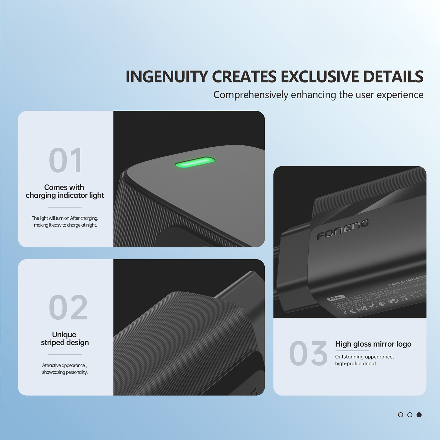 Foneng Falitöltő EU63 - 2xUSB - 12W USB-Micro USB kábellel fekete