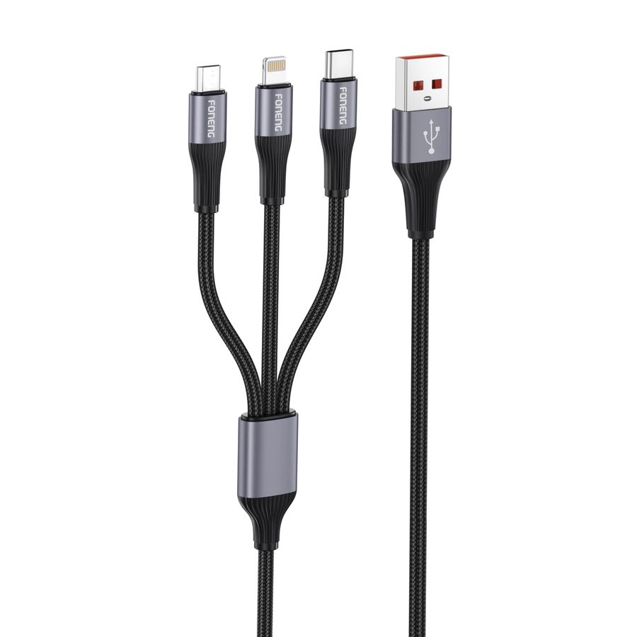 FONENG kábel X112 3in1 3A 1.2M Fekete