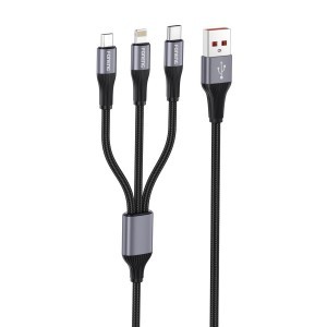 A FONENG X112 3 az 1-ben kábel a tökéletes választás azok számára, akik egyetlen megbízható, tartós és sokoldalú kábelt keresnek, amely megfelel a modern digitális élet kihívásainak. Tegye egyszerűbbé a töltést és az adatátvitelt ezzel a prémium minőségű megoldással!