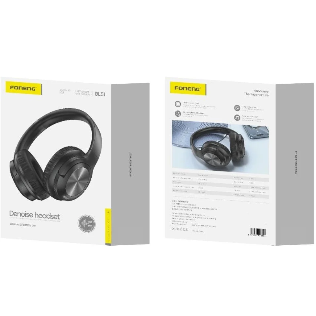 A FONENG BL51 vezeték nélküli fejhallgató a tökéletes választás azok számára, akik kiváló hangminőséget, hosszan tartó kényelmet és zavartalan zenehallgatási élményt keresnek. Fekete színével és letisztult, összecsukható kialakításával bármilyen stílushoz illeszkedik, és ideális útitárs a mindennapokban.