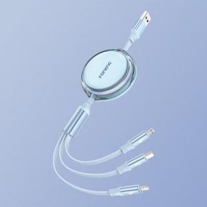 A Foneng X113 kábel teleszkópos, kétfokozatú kialakítással rendelkezik, amely mindkét irányban kényelmes skálázást tesz lehetővé. Ez lehetővé teszi, hogy a kábelt az Ön igényeihez igazítsa, optimális hosszúságot és kényelmet biztosítva. Támogatja a három különböző interfésszel rendelkező eszközök töltését: (2,1A), Lightning (2,4A) és Type-C (3A). Az adatátvitelt is támogatja, így ideális választás azok számára, akik sebességet és funkcionalitást keresnek egyben.