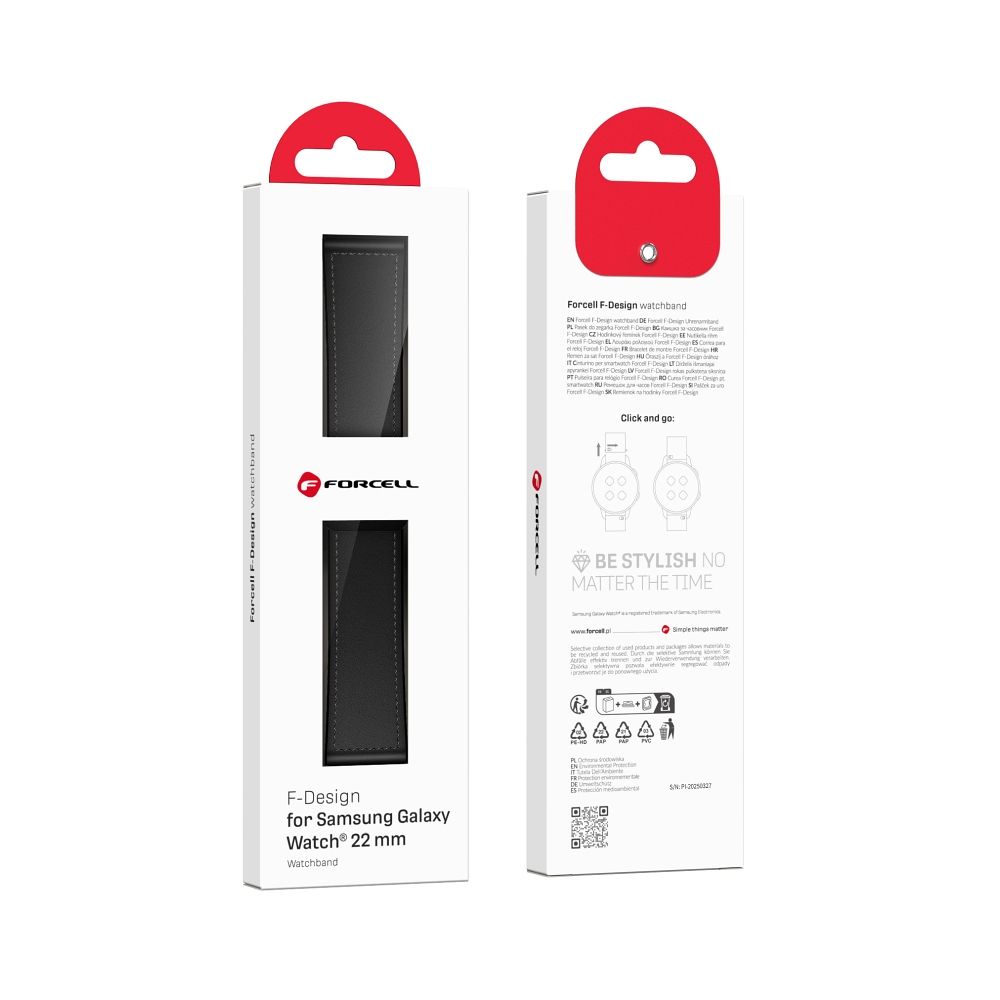 A Forcell F-Design FS20 szíj kompatibilis a Samsung Watch 22 mm-es okosórákkal, de a legtöbb 22 mm széles teleszkópos órához és okosszíjhoz is illeszkedik. Funkcionalitást ötvöz modern megjelenéssel, így minden helyzethez megfelelő - a mindennapos használattól kezdve a formálisabb alkalmakig. Specifikáció: