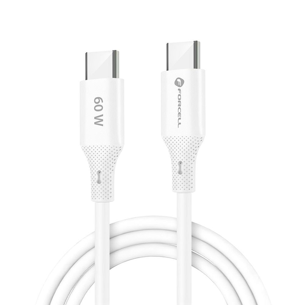 Univerzális USB-C kábel 60 W-os nagy teljesítménnyel, amely lehetővé teszi az okostelefonok, tabletek és laptopok gyors és biztonságos töltését. Puha, rugalmas szilikonból készült, amely megakadályozza a gubancolódást, és egyedi textúrája növeli a használat kényelmét.
