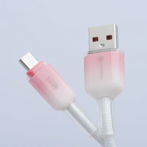 USB-A-ról Micro USB-re kábel 18 W teljesítménnyel, amely lehetővé teszi a gyors eszköztöltést a Quick Charge 3.0-nak köszönhetően, valamint a hatékony adatátvitelt. A finoman színezett csatlakozóval kitűnik a standard modellek közül.