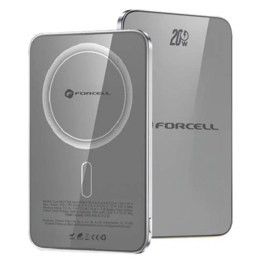 Fedezze fel a FORCELL F-ENERGY F5K8 Super Slim powerbankot, a tökéletes társat, amelyet kifejezetten az Apple eszközök – iPhone, Apple Watch és AirPods – felhasználói számára terveztek, de univerzális töltési megoldást kínál más okostelefonok számára is. Ez az ultravékony, MagSafe kompatibilis hordozható töltő nem csupán stílusos, hanem rendkívül funkcionális is, prémium anyagokból készült, és a legmodernebb gyorstöltési technológiákat támogatja, maximális kényelmet biztosítva útközben.