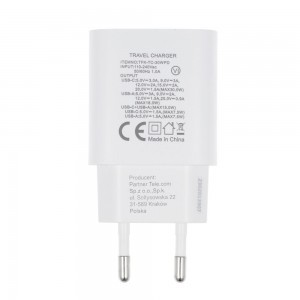Fedezze fel a modern és hatékony töltés élményét a FORCELL F-ENERGY TFK-TC-30WPD utazó töltővel Type C + USB A PD QC4.0 3A 30W fehér színben! Ez a kompakt és stílusos fali adapter két portjának (USB-C és USB-A) köszönhetően maximális rugalmasságot biztosít eszközeinek töltéséhez, akár 30W teljesítménnyel. Tökéletes választás otthonra, irodába és utazáshoz egyaránt, hiszen támogatja a Power Delivery (PD) és Quick Charge (QC4.0) technológiákat a villámgyors energiaellátásért.