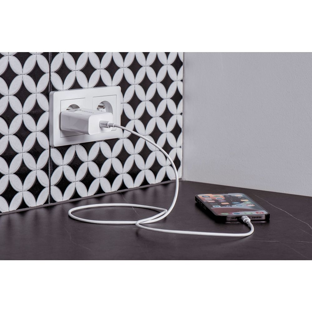 • Praktikus használat: Kialakítása révén nem foglal el feleslegesen helyet a fali konnektorban vagy a hosszabbítóban, így más eszközök töltéséhez is marad hely.
