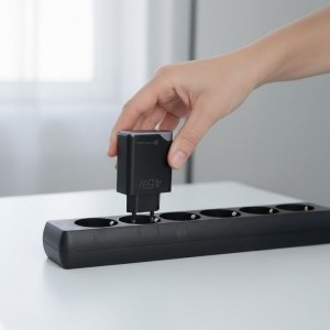 Az "Ultra-slim design" nem csupán ígéret, hanem valóság! A töltő ultra-vékony háza és kompakt méretei (mindössze 9.3 × 4.9 × 1.7 cm) garantálják, hogy akár a zsebében is elférjen. Ideális otthoni használatra, irodába és utazáshoz egyaránt. Különlegessége, hogy olyan vékony kialakítású, hogy konnektorsorban sem takarja el a szomszédos aljzatokat, így maximális kihasználtságot biztosít. A letisztult, modern fekete-szürke megjelenés és a szabadalmaztatott design ("Design patented" a csomagoláson) hangsúlyozza a modell egyedi karakterét és a magas minőségű kivitelezést.