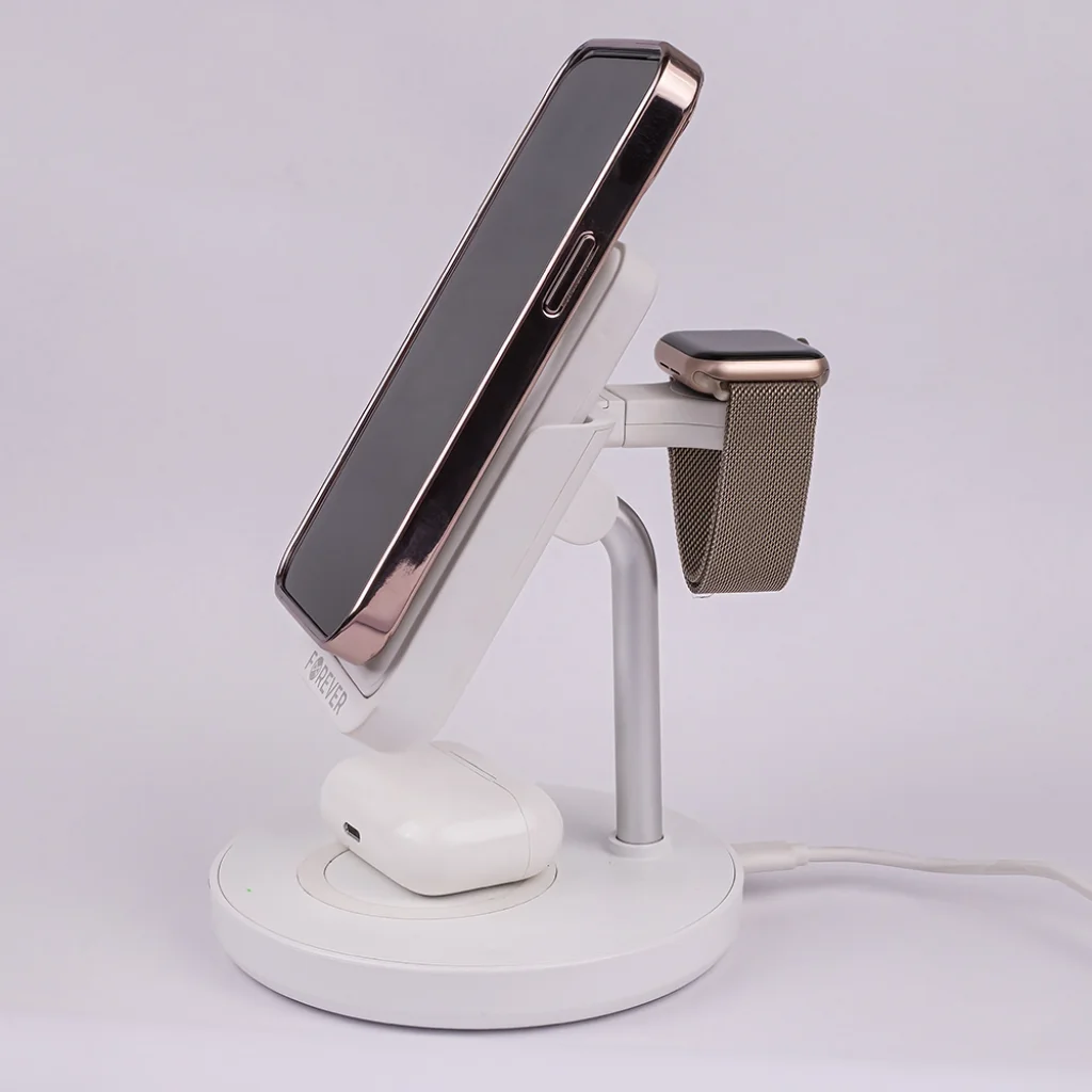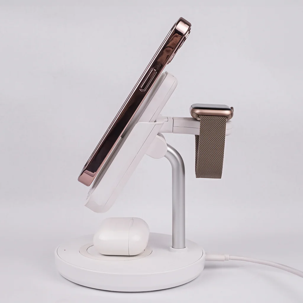Az állomás gyors vezeték nélküli töltéssel rendelkezik. A telefon mágneses rögzítése és a támasztóláb biztosítja az eszköz optimális helyzetét a töltés során, ami nemcsak megkönnyíti a folyamatot, hanem növeli a használat kényelmét is.