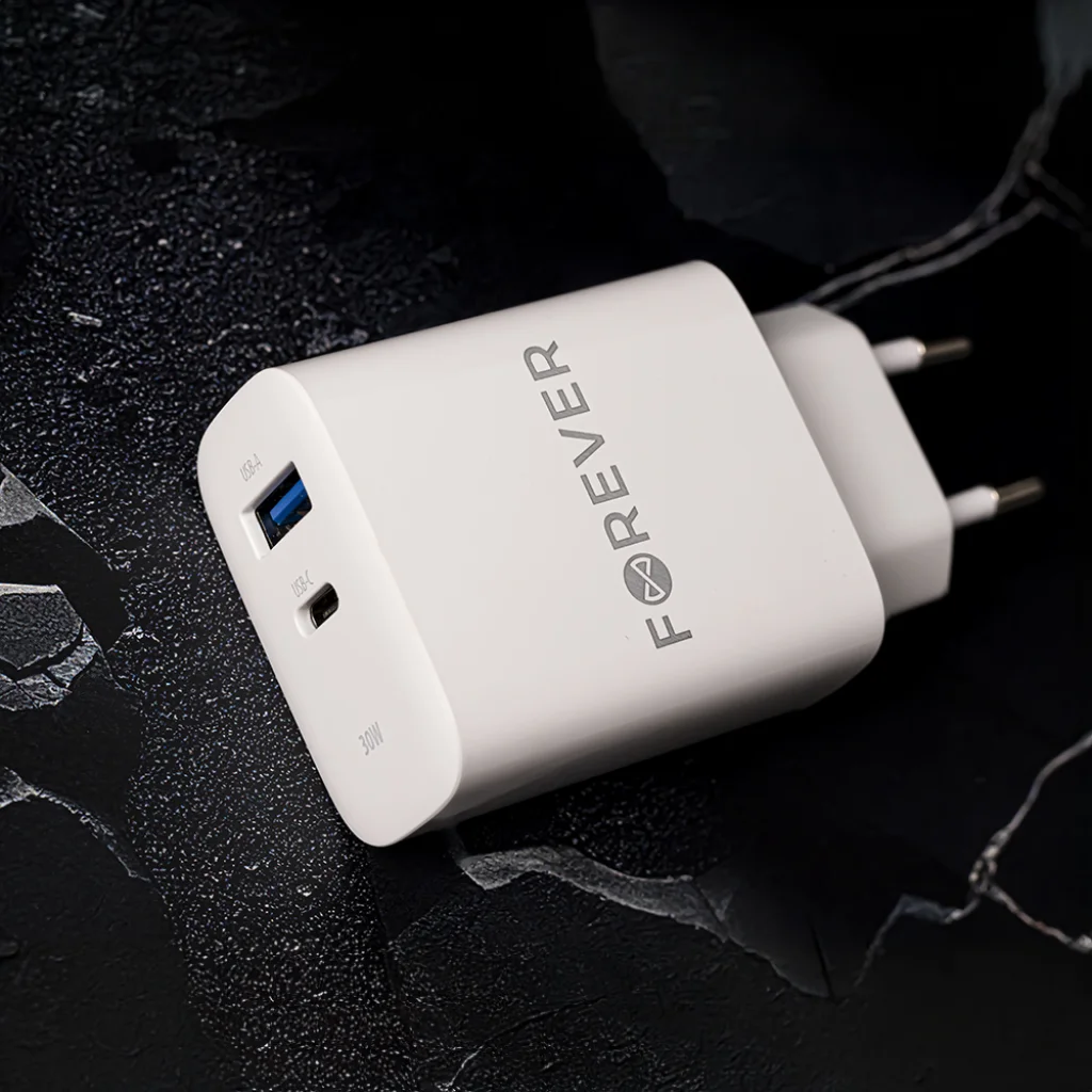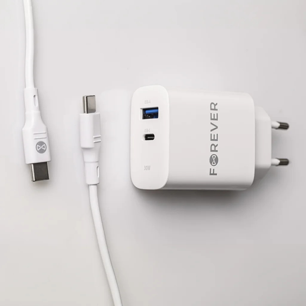 A Forever TC-07 hálózati töltő egy fejlett megoldás okostelefon- és laptopfelhasználók számára, amely gyors töltést kínál kompromisszumok nélkül. A 30W teljesítménnyel rövidebb töltési időt biztosít, ami azt jelenti, hogy gyorsan visszatérhet a készülék használatához.