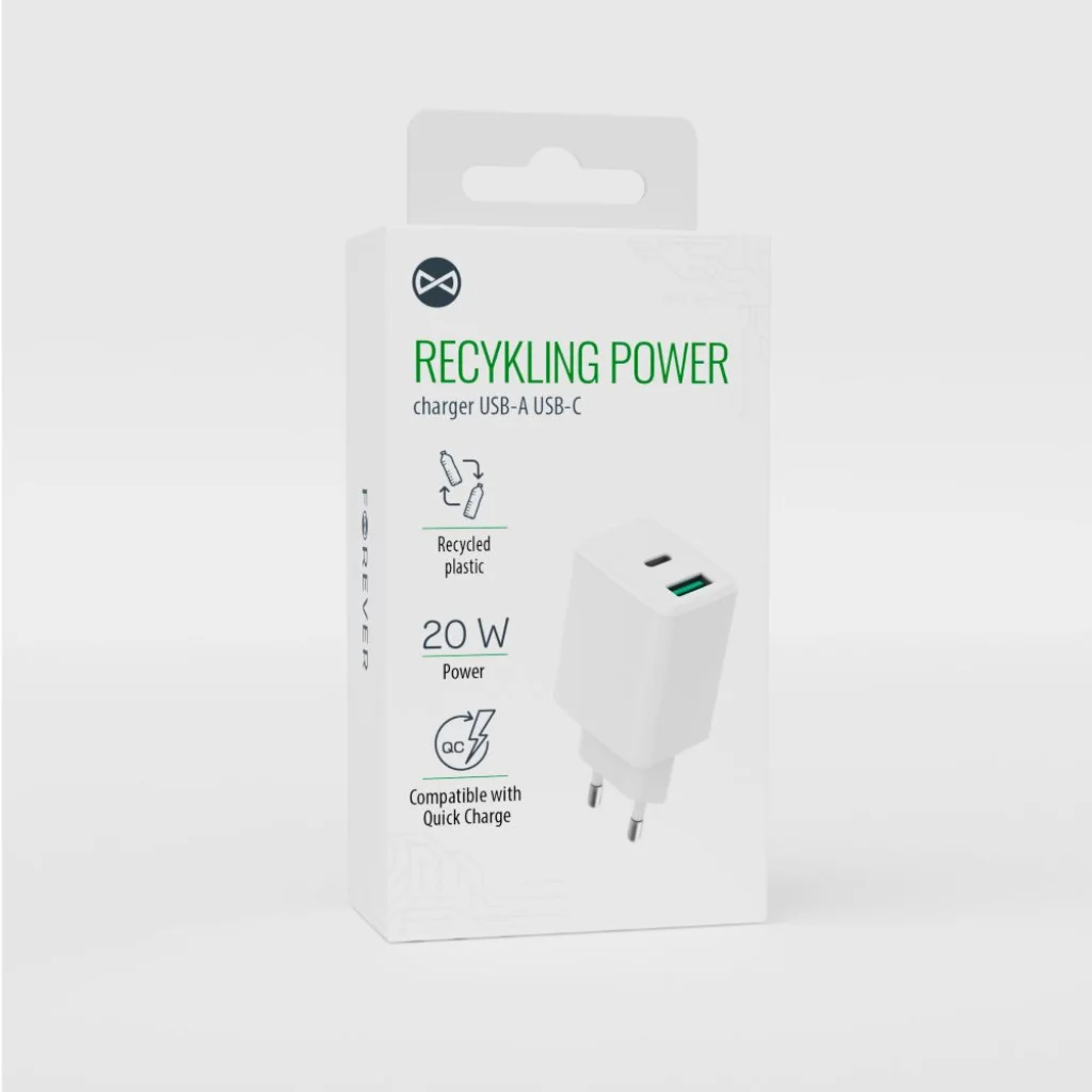 Keresel egy gyors, megbízható és egyben környezettudatos töltési megoldást? A Forever újrahasznosított 20W-os fali töltője tökéletes választás, hiszen nem csak az eszközeidet látja el energiával villámgyorsan, de a bolygónkra is figyel a gyártás során.