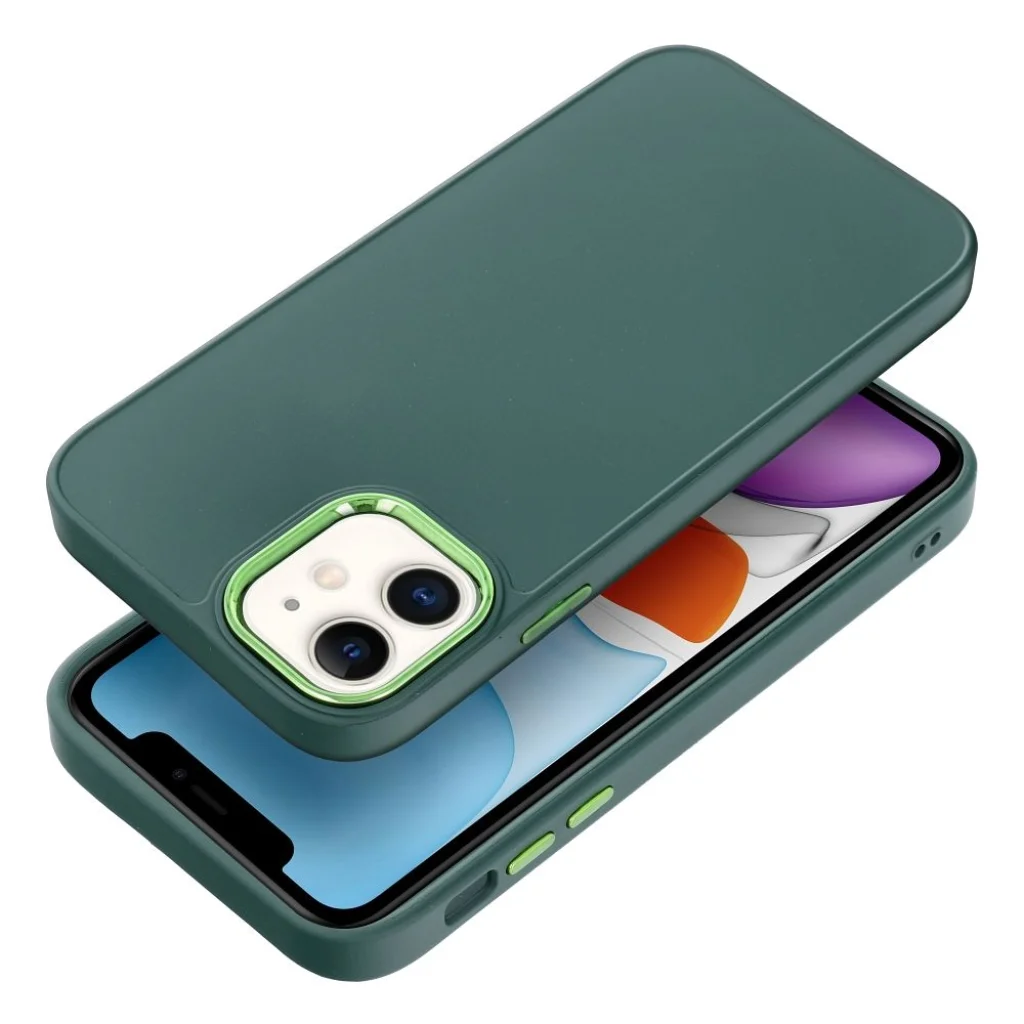A Frame tok egyaránt elegáns és praktikus kiegészítő a telefonja számára. Megerősített szélekkel, puha TPU anyaggal, valamint színes galvánbevonattal rendelkező, kamerakörül keretezett PC-vel készült. A Frame egyenletes színű, matt kialakításával tűnik ki. A jó minőségű TPU kellemes tapintású, és a megerősített széleknek köszönhetően kiváló védelmet nyújt a készülék számára, csökkentve a karcolásokat a hátlapon és az oldalakon. Fontos, hogy a tok kamerakörül is extra védelmet biztosít a megemelt keret formájában. Tartós PC-ből készült, amely galvánbevonattal van ellátva, a tok színével megegyező árnyalatban.