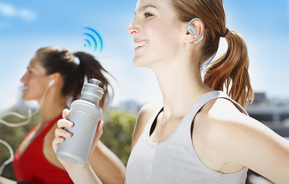 A nyitott fülkagylók, amelyek nem zárják el teljesen a hallójáratot, jobb légáramlást tesznek lehetővé. A megoldás csökkenti a hagyományos fülbe helyezhető fejhallgatók hosszú távú viselésekor gyakran előforduló kényelmetlenség érzetét. A puha szilikon fülkampók rugalmasak és alkalmazkodnak a fül formájához, így még intenzív edzés közben is biztosítják a stabilitást.