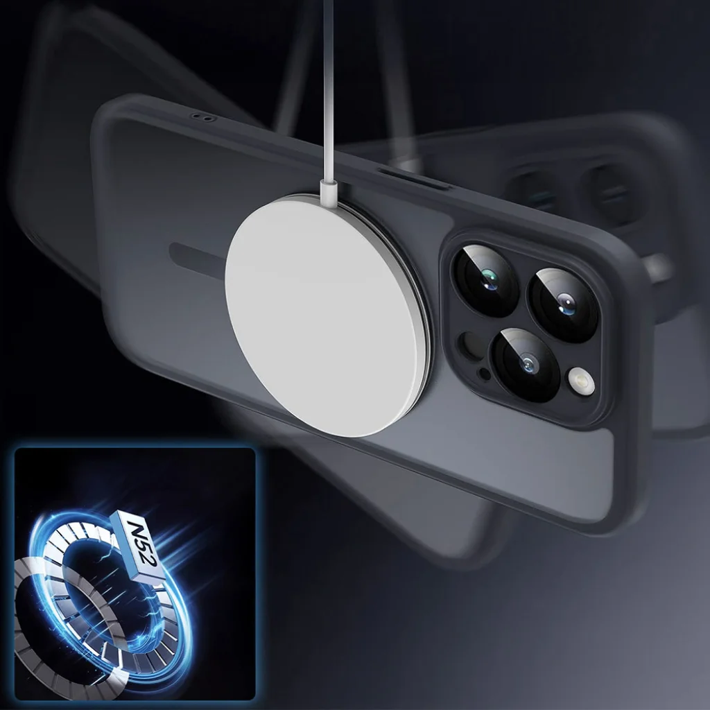 Full Matte Mag fliptok – Teljes védelem N52 mágnesekkel - Hibrid felépítés – Rugalmas TPU oldalak és matt, félátlátszó PC hátlap biztosítanak tartósságot és modern megjelenést. - Fedett kamerás sziget – A teljes lencsevédelmet biztosítja a maximális biztonság és elegáns esztétika érdekében. - N52 mágnesek – Erős mágneses gyűrű biztosítja a szoros kompatibilitást a MagSafe töltőkkel és kiegészítőkkel. - Matt felület – A színezett felület ellenáll az ujjlenyomatoknak, és elegáns, kifinomult megjelenést kölcsönöz. Fejlett mágneses technológia - N52 minőségű mágnesek – Erős tartást és biztonságos MagSafe kiegészítők csatlakozását biztosítják. - Könnyű töltés – Kompatibilis a vezeték nélküli töltéssel a tok eltávolítása nélkül. 360°-os védelem | Minden, amire szüksége van - Ütéselnyelő sarkok – Segítenek megvédeni a telefont a leejtésektől és ütésektől. - Integrált kamera keret – Védi a lencséket a karcolásoktól és sérülésektől. Átgondolt kialakítás - Karcsú profil – Könnyedén kezelhető és könnyű marad a telefon. - Zsinórlyukak – Csatlakoztathatja a csuklópántot vagy charmot a további kényelem érdekében.
