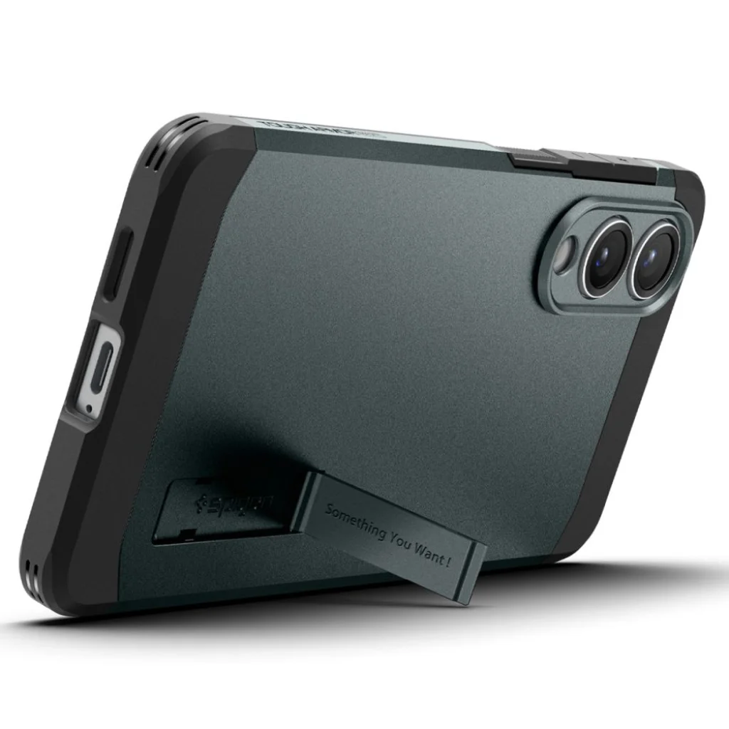 A Spigen márka Tough Armor sorozatú tokja az elődje továbbfejlesztett változata. A tok mágneses gyűrűvel van felszerelve, amely kompatibilis a MagSafe rögzítőrendszerrel és vezeték nélküli töltéssel, lehetővé téve az Apple technológia gyors és egyszerű használatát. Kétrészes felépítése kopásálló termoplasztikus anyagból és megerősítő polikarbonát keretből készült. A tok belsejében technológiai habbetét található, amely további védőréteget biztosít ütésektől vagy leejtésektől. A tok tökéletesen illeszkedik, és nem korlátozza a vezeték nélküli töltési lehetőséget. Az emelt keretforma a kamera és a képernyő körül megvédi azt a karcolásoktól, megemelve a telefont a sík felület fölé. Védelmet nyújt a gomboknál és kivágásokat tartalmaz a portoknál. A Tough Armor tok 26 alkalommal volt leesési tesztnek alávetve 1,2 m magasságból, ezáltal megkapta az amerikai katonai tanúsítványt, a MIL-STD 810G-516.6-ot.