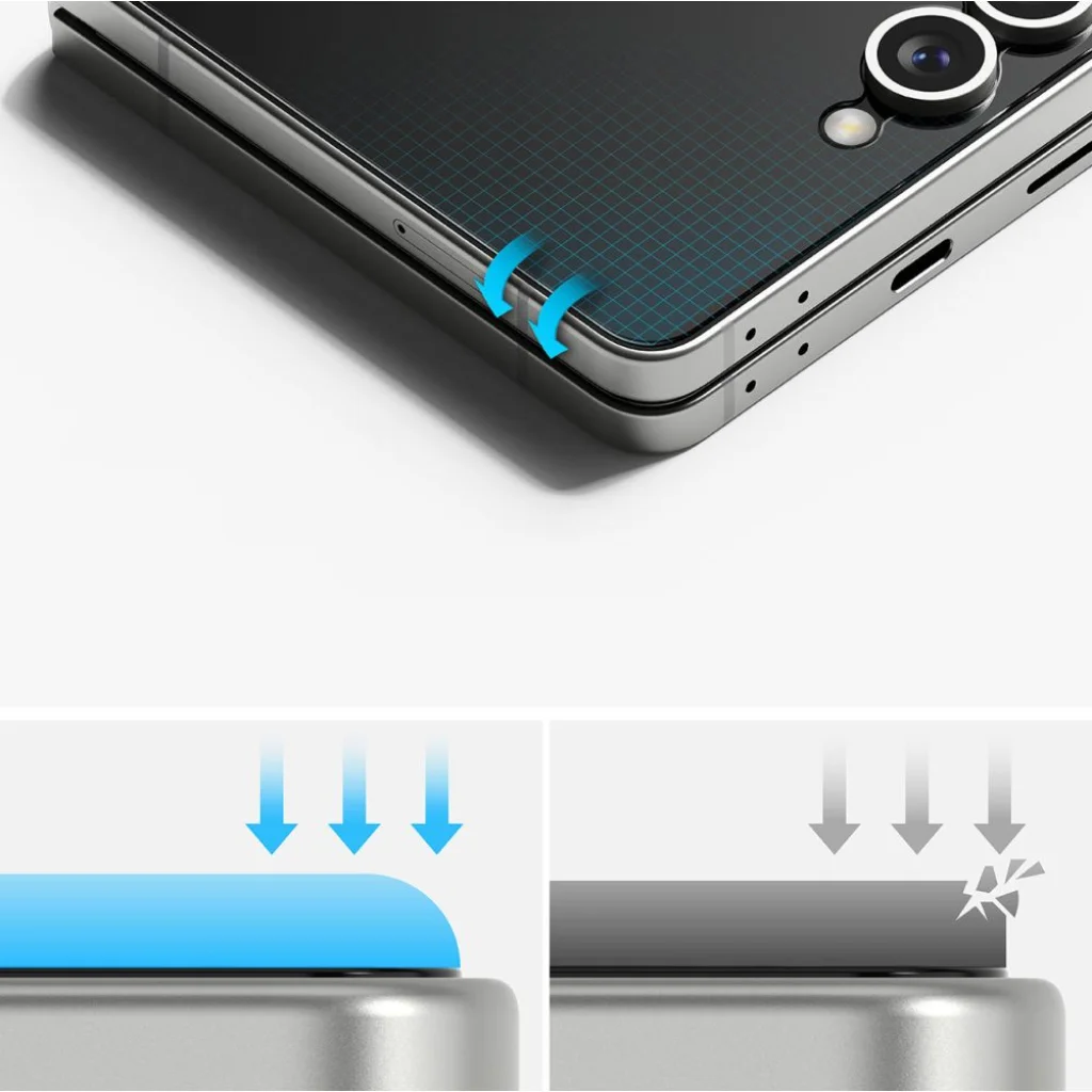 A Ringke márka átfogó szettje teljes körű védelmet biztosít készüléked számára. Tökéletesen védi okostelefonod minden részét. A 9H keménységű edzett üveg maximális védelmet nyújt. Megvédi az előlapi képernyőt a sérülésektől, mint például esések, rázkódások és karcolások. Megőrzi a képernyő eredeti tisztaságát. Az oleofób bevonat visszaveri a kozmetikai foltokat és a zsíros ujjlenyomatokat. A 3 az 1-ben szett optimális védelmet nyújt a készülék belső képernyőjének is. Az EPU anyagból készült fólia öngyógyító technológiával készül, megakadályozva a gyűrődések kialakulását. Az apró buborékok, mindennapos karcolások és horzsolások gyorsan javulnak a fejlett technológia által. A vékony és szilárd burkolat erőteljes védelmet nyújt, miközben megőrzi az érzékeny érintést. Ezenkívül a gyártó rugalmas védőfóliát is mellékelt, amely megvédi a kritikus, például a zsanérok körüli területet.