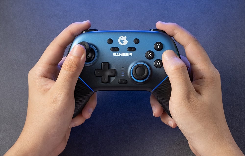 A GameSir SuperNova T4n Pro vezeték nélküli kontroller (kék) PC, Nintendo Switch, iOS és Android játékosok számára készült. Háromféle csatlakozási módot kínál - vezetékes, Bluetooth és 2,4 GHz-es -, így bármilyen platformon korlátozások nélkül játszhatsz. A Hall Effect rendszerrel ellátott analóg karok megszüntetik a sodródás problémáját, biztosítva a precizitást, míg a speciális gyűrűk megakadályozzák a súrlódást, zökkenőmentes mozgást biztosítva dinamikus játékmenet során.